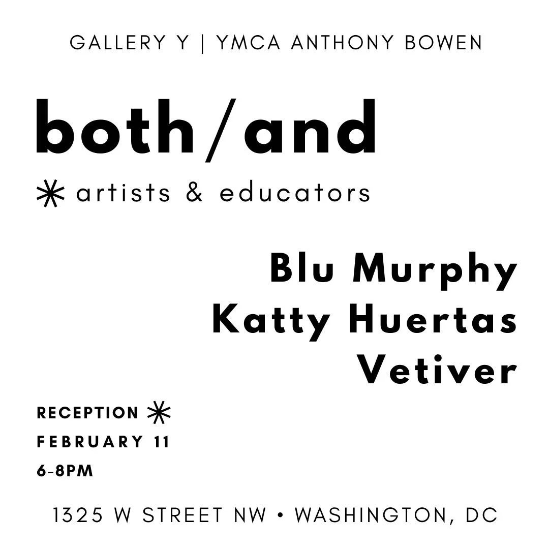 Our next exhibit both/and, features three artists who are both artists and educators. Blu Murphy, Katty Huertas, and Vetiver each have a distinct artistic style and their own approach to teaching. This is both a group exhibit and three mini solo exhibits.